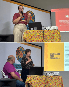 A programação seguiu com uma Caminhada Profética e Solidária, um gesto simbólico de escuta, partilha e compromisso com a missão. Em grupos, os participantes apresentaram as ações realizadas nos estados e dialogaram sobre caminhos para fortalecer a rede e aprofundar a presença da Cáritas nos territórios. “Saio encantada e fortalecida. Levo comigo aprendizados e a esperança de ver a Cáritas ainda mais viva e atuante em Alagoas”, partilhou Thamires Morais, voluntária e presidente da Cáritas Diocesana de Palmeira dos Índios (AL).